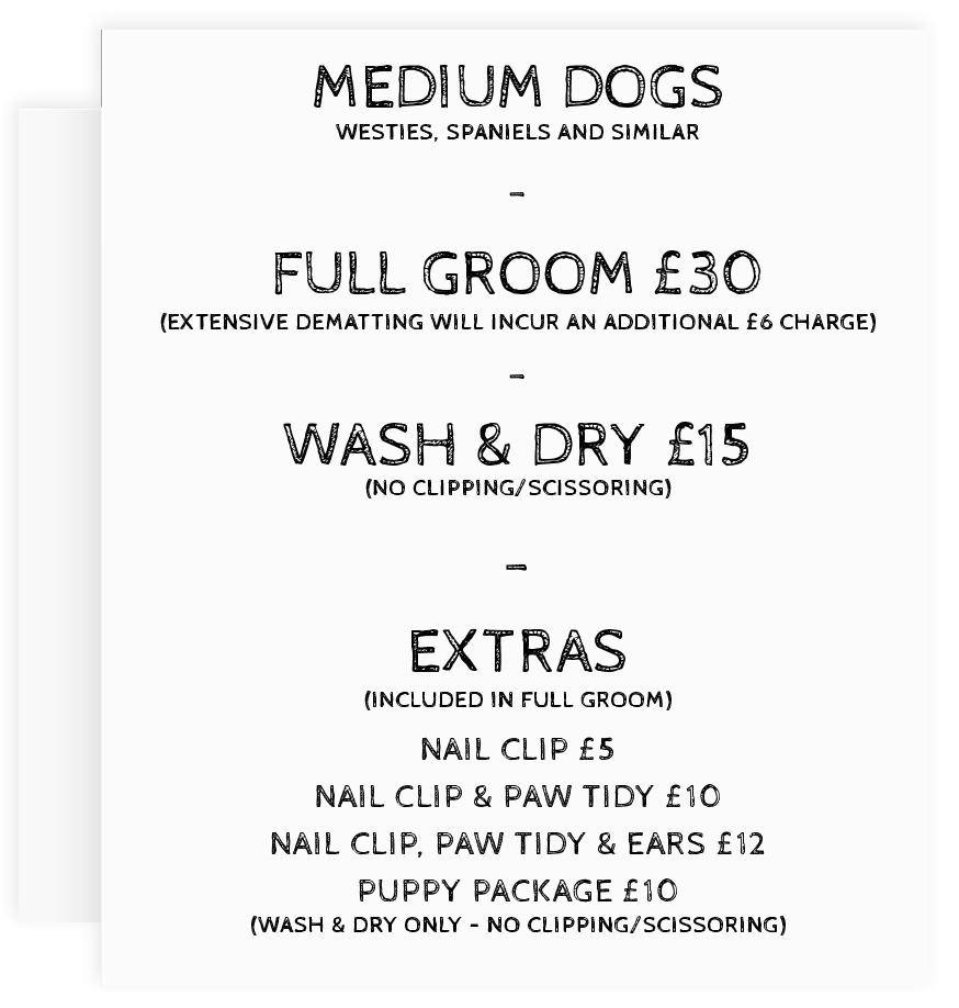 We have a selection of professional shampoos to suit every dogs coat, including dogs with sensitive skin and puppies.